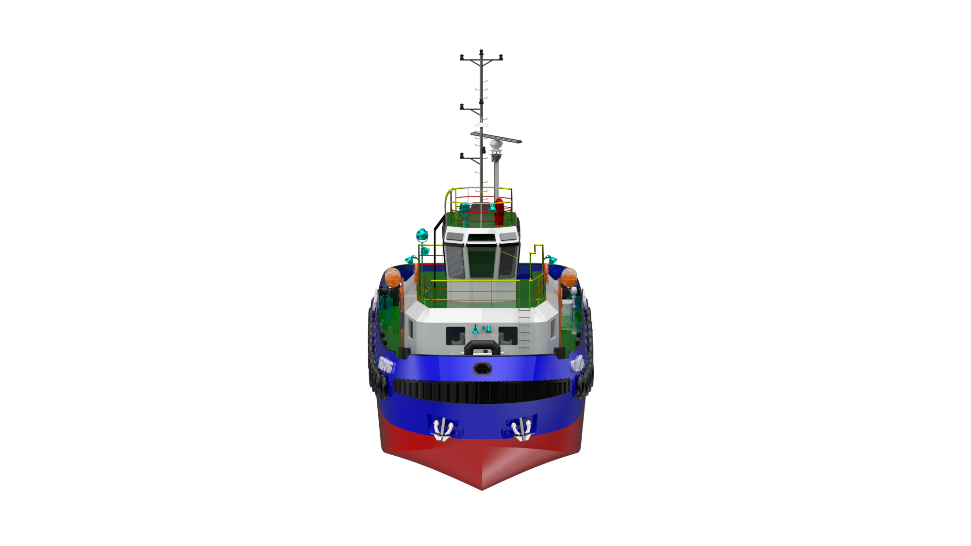 A steel-built marine tugboat featuring a modern design and high bollard pull, capable of performing